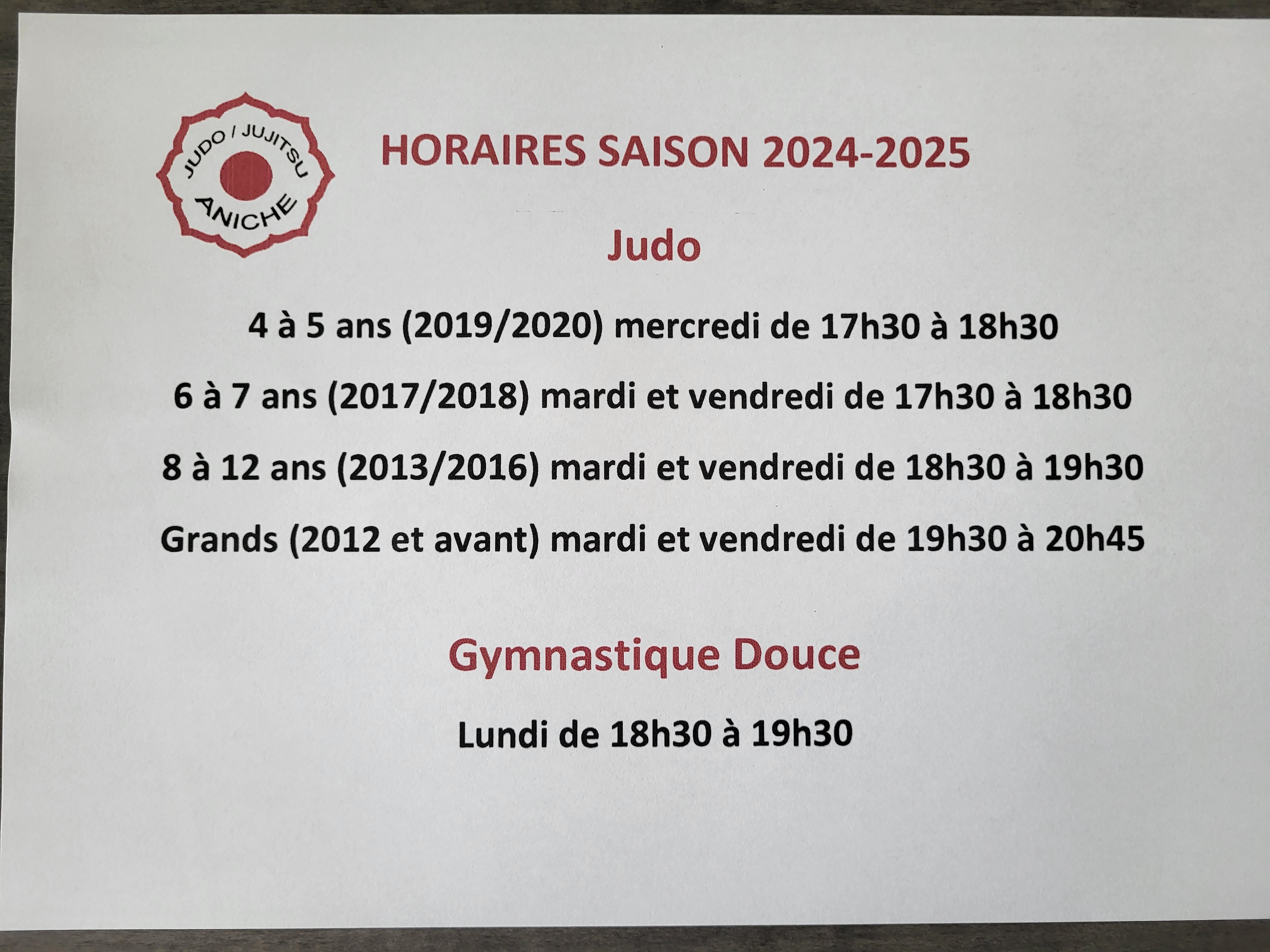 8 à 12 ans (2013/2016) mardi et vendredi de 18h30 à 19h30